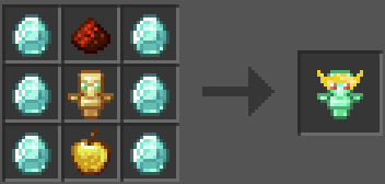 Crafted with 6 diamonds, 1 golden apple, 1 redstone dust, and 1 totem of undying